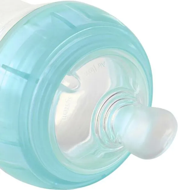 Esprit-flaskans dinapp är utformad för att stimulera naturlig amning direkt när barnet vidrör dinappen. Så fort flaskan är i matningsläge startar luften i luftkammaren den mjuka och konstanta ventileringsprocessen i nappflaskan. Dinappens unika ventil, med en mycket känslig öppnings/stängningsfunktion, ger jämnt flöde så att barnet sväljer mindre luft vilket förhindrar uppkomst av kolik. Dinappens kurvatur imiterar bröstets naturliga form, vilket underlättar i övergången från bröst- till flaskmatning.