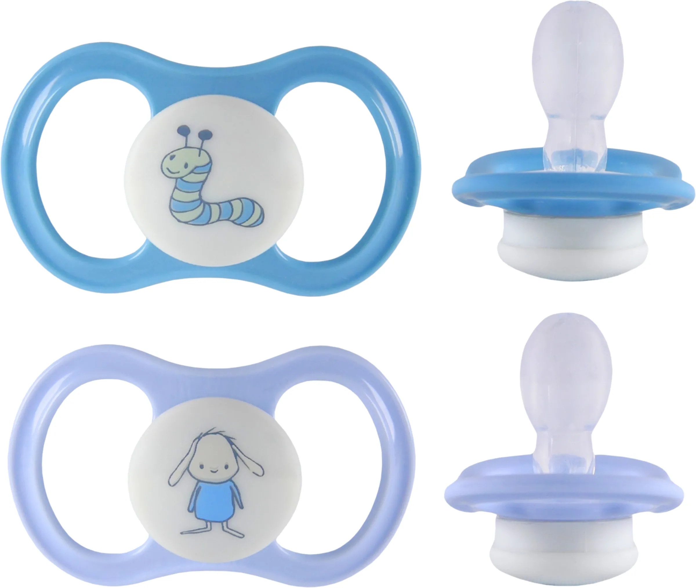 En symmetrisk sugdel är rak, droppformad och utformad för att ligga rätt i barnets mun oavsett vilket håll den hamnar på.
