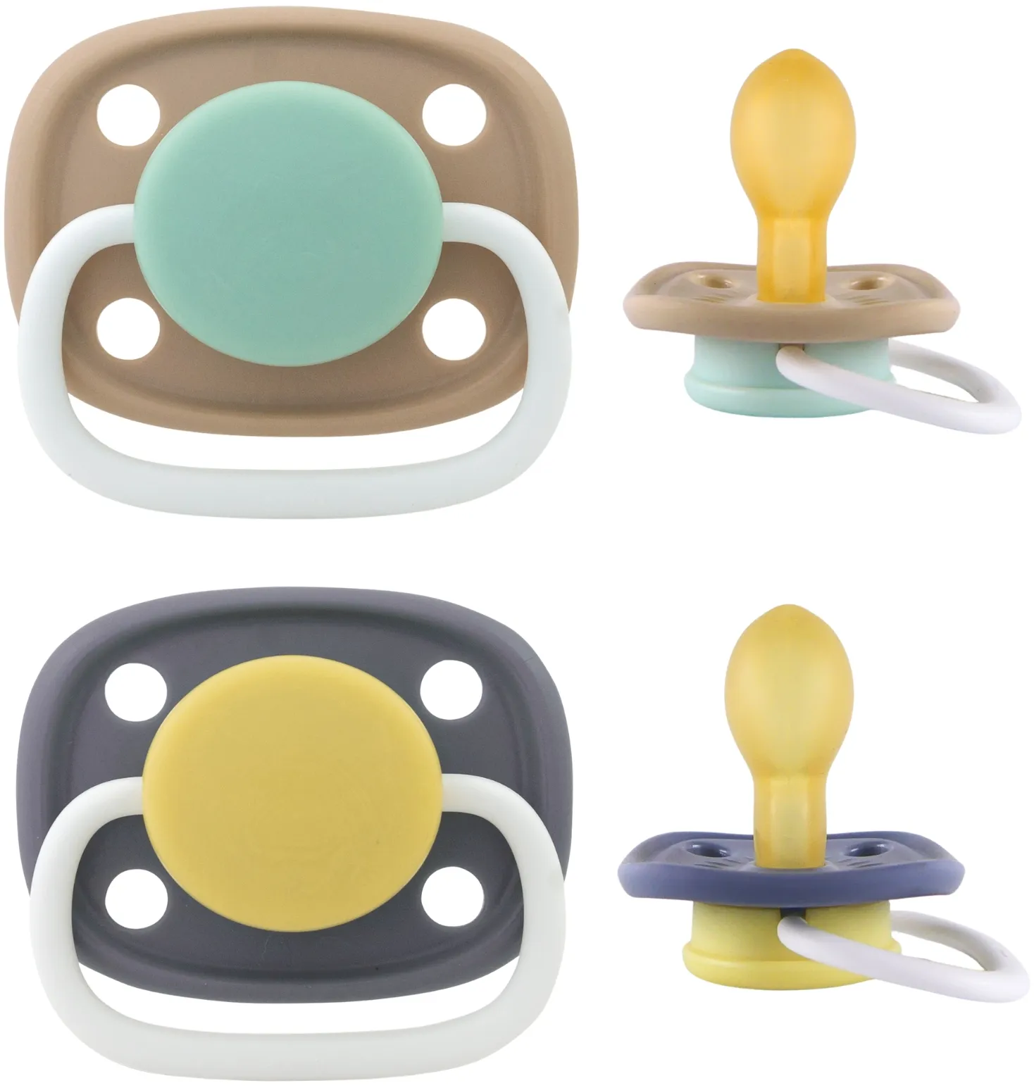 Naturgummi (latex) är segare och tåligare än silikon mot barns vassa tänder, men ingen napp är gjord för att klara av bitande. Kontrollera alltid nappen innan användning och säkerställ att det inte finns några bitmärken.